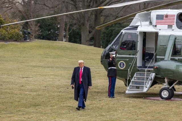 2月22日,美国总统特朗普乘直升机返回华盛顿白宫。新华社记者胡友松摄